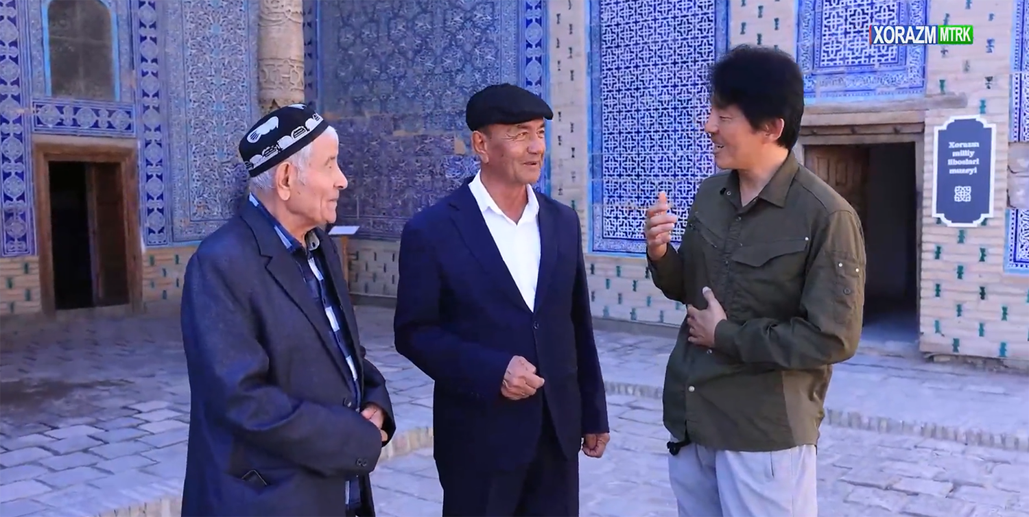 取材を受けたのが、2024年4月から常設写真展を開始しているヒヴァのタシュハウリ宮殿ということもあって、私の写真展や活動についても番組内でかなり時間をさいて紹介してくださいました。